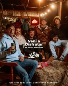 Ofrecemos delivery y take away, para que puedas llevarte el sabor de Lumbre donde quieras. Pero también te esperamos en nuestro patio cervecero, un punto de encuentro donde suceden cosas: música en vivo, ferias, muestras y eventos culturales que le dan vida a nuestras noches.